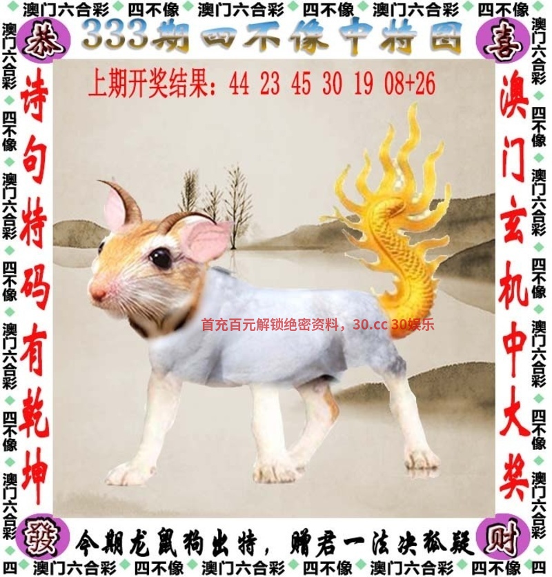 | 333期:今期龙鼠狗出特,赠君一法决狐疑开:鼠06准 ①图解特肖龙鼠狗羊猪 ②合单+小数 |